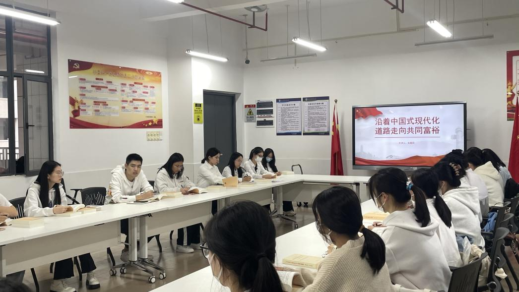 最后,吴老师以沿着中国式现代化道路走向共同富裕为主题讲授专题党课他从“把促进全体人民共同富裕摆在更加重要的位置”、“准确理解和把握促进全体人民共同富裕的内涵”和“推动全体人民共同富裕取得更为明显的实质性进展”三个方面展开论述。他指出,没有共产党,就没有今天来之不易的幸福生活,中国式现代化是党领导中国人民的伟大创造,共同富裕是“共建”与“共享”、“物质”与“精神”、“尽力”与“量力”相统一的全面富裕。