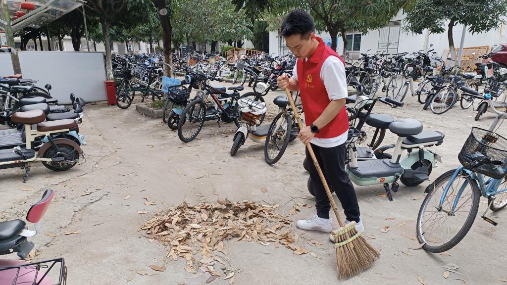 活动现场,大家齐心协力,分工明确,配合默契,对第二教学楼周边片区的花基杂草杂物清理清除,并将电动车、自行车等摆放整齐,展示出了极高的工作效率,大家争做绿水青山的守护者、生态文明的践行者,展现了公司青春风采。