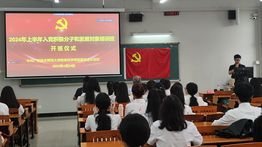 为深入学习习近平总书记重要讲话和重要指示精神,牢牢把握新时代党校工作的根本遵循,强化党员教育培训工作规范提升,助推新时代党校事业高质量发展。2024年4月24日,BV伟德官方网站分党校于三教303教室组织召开了2024年上半年入党积极分子和发展对象培训班开班仪式暨专题党课培训第一讲。公司党委书记张旭日、数字媒体技术本科生党支部书记张琳、应用心理学本科生党支部书记肖孟琦、学前教育本科生党支部书记吴晨阳、专职辅导员宁康出席会议。会议由宁康主持。