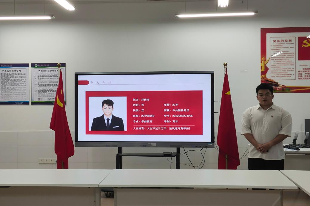 (图:学前教育本科生党支部副书记林纯同志主持)