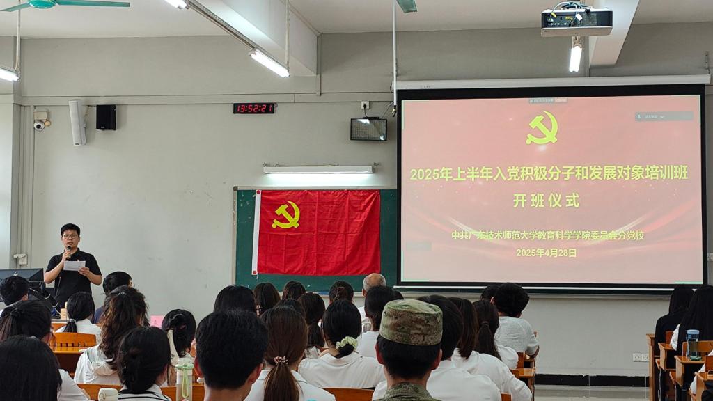 为深入学习贯彻习近平新时代中国特色社会主义思想和党的二十大和二十届二中、三中全会精神、中央八项规定精神,把牢发展党员“入口关”“质量关”,2025年4月28日,BV伟德官方网站分党校于白云校区第三教学楼206教室和河源校区唯实楼205教室组织召开了2025年上半年入党积极分子和发展对象培训班开班仪式暨专题党课培训第一讲。公司党委书记张旭日、研究生第一党支部支部书记梁爽、教育技术学本科生党支部支部书记热依拉·艾比布力、应用心理学本科生党支部支部书记肖孟琦、学前教育本科生党支部支部书记袁炜、专职组织员宁康出席会议。会议由宁康主持。