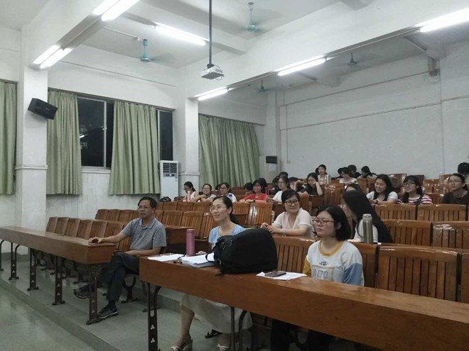 2017年6月14日晚上7点,教育科学与技术公司应用心理专业13级优秀毕业生代表在一教207举行心理学专业就业交流暨师范生技能大赛新老生交流会。公司党委林启词书记;应用心理系主任张玲燕老师、梁碧珊老师;辅导员张琳老师出席了此次活动。本次会议由应用心理系主任张玲燕老师主持。