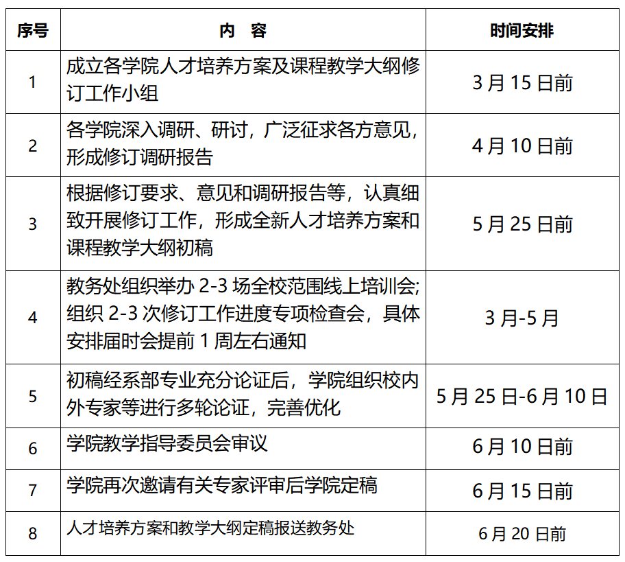 (二)各教学单位应按照如下进度安排推进修订工作: