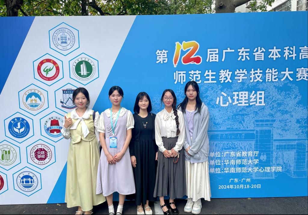 2024年10月19-20日,BV伟德官方网站应用心理系庄雅玲、杨怡珠、林颖欣、何舒琪、高艺萌五位同学,由李平老师带队赴华南师范大学参加了第十二届广东省本科高校师范生教学技能大赛心理组的比赛。在历时两天的比赛过程中,五位选手充分运用在校所学的心理学专业知识与技能,在现场说课、模拟授课环节表现出色,针对现场评委的提问,五位选手均能够沉着应对,以良好的表现充分展示了我系员工的专业实力,获得了评审专家一致认可。经过激烈角逐,庄雅玲同学从七十多位选手中脱颖而出,获得大赛三等奖。