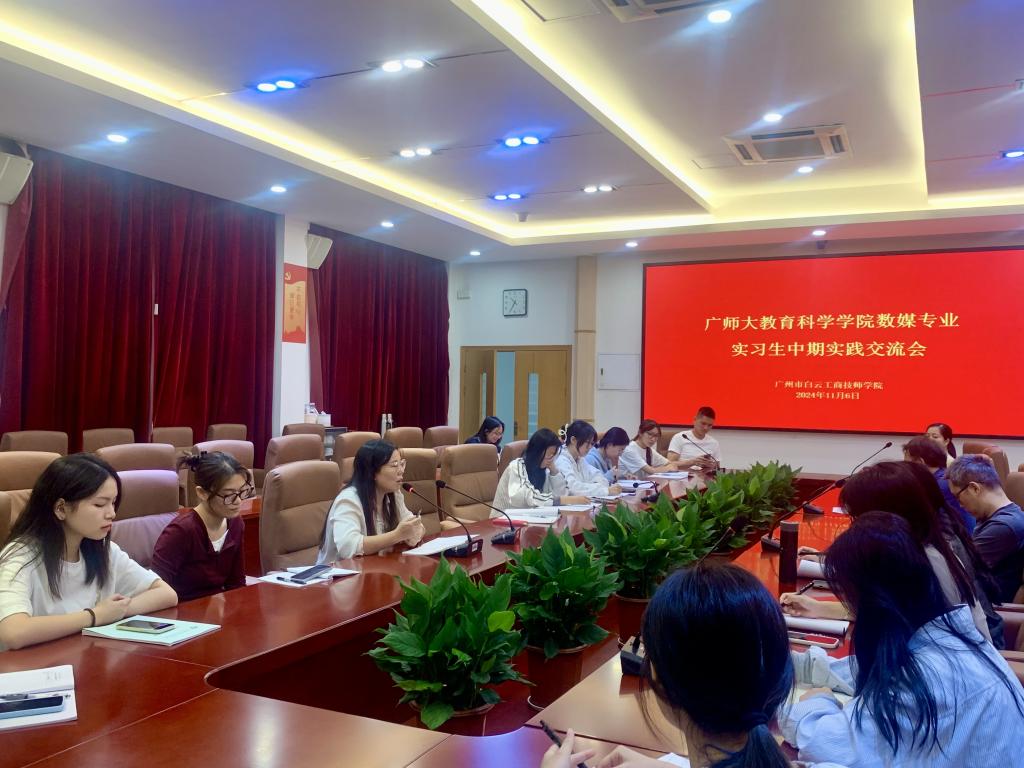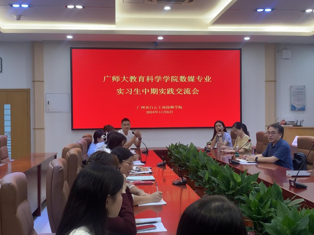 为及时了解公司员工开展教育实习进展情况,加强对毕业实习工作的规范化管理,提高实践教学质量与实习成效,2024年11月6日,按照公司与公司部署,公司实习带队指导老师李端强赴广州市白云工商技师公司教育实践基地开展2021级数字媒体技术(师范)专业实习队实习中期检查,并与广州白云工商技师公司的领导、指导老师以及19位实习生一起就数媒专业实习生中期检查进行了座谈。