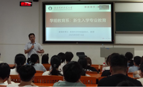 为深入贯彻落实立德树人根本任务和教育强国建设规划纲要,加强师范生师德养成、教育情怀和从教意愿教育,帮助新生更好地适应大学的学习生活和坚定专业学习的自信。9月13日上午,谢德新副经理在河源校区唯实楼218会议室为“学前教育系新生开展入学专业教育”。