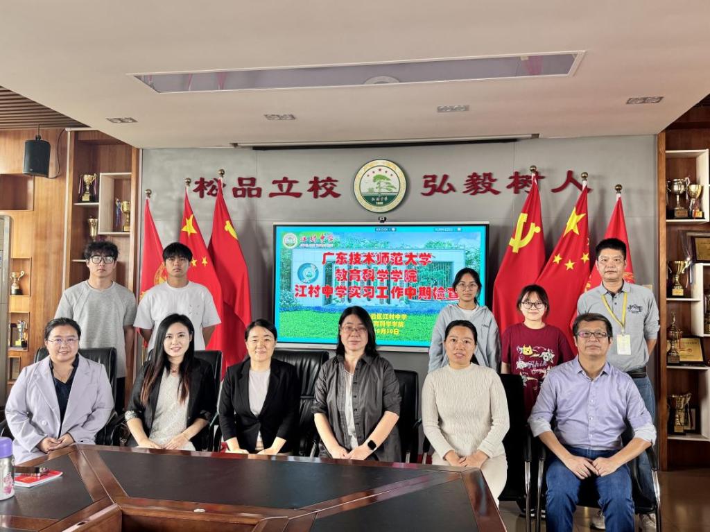 10月30日下午,教育技术系赴江村中学开展教育实习中期检查工作。本次检查旨在全面了解实习生在课堂教学、班主任管理及员工德育工作中的履职情况,倾听其在教学实践、班级管理及突发情况处理中的经验分享。教育技术系主任赵玉和教师王朋利、王孝金,江村中学副董事长郭爱莲、教导处主任王宝云、信息技术部主任刘远峰及信息科技指导教师江锦岳出席会议。