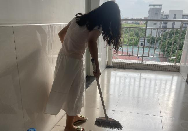 我们四人进行了分工,分别负责扫地、拖地、清洁洗手台、清洗冲凉房和厕所。打扫时,我们每个人都承担起自己的责任,高效地完成了打扫任务。看到宿舍和走廊被我们打扫得干干静静的,我们充满了成就感和喜悦。一个舒适的宿舍环境不仅让我们享受愉快的生活,还有助于我们专心学习。