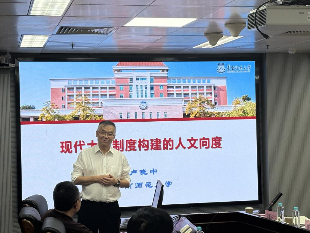 活动在第一项议程——华南师范大学粤港澳大湾区教育发展高等研究院经理、知名高等教育研究专家卢晓中教授的专题讲座中拉开帷幕。卢晓中教授指出当前大学制度存在“严重的人文缺失”,表现为功利化导向和“抓关键少数”的政策倾向。他指出,制度若只围着项目、论文数等可量化指标转,就会导致育人过程被边缘化,师生兴趣与想象力在刷分和排名中消磨;而将资源过度集中于少数“帽子”人才和标签化公司,则会使大多数师生被制度性忽视,从而滋生“自甘平庸”的心态。