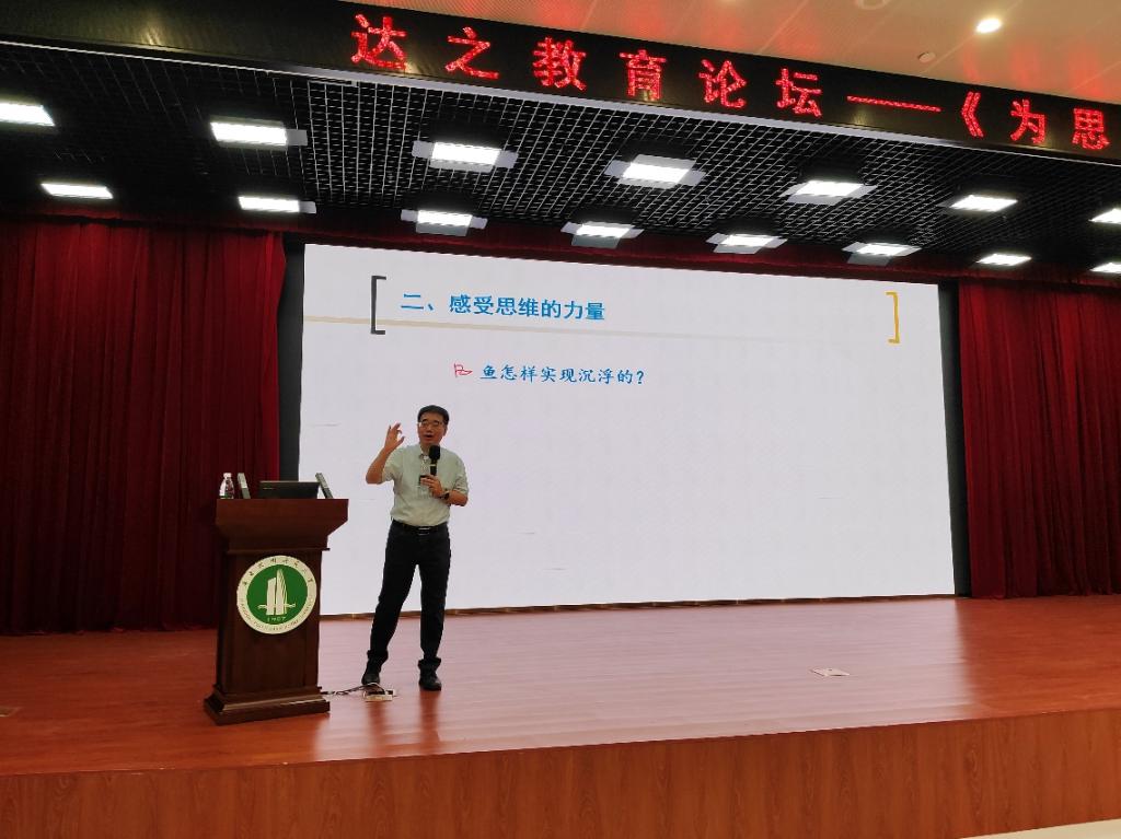 于海波教授围绕“爱因斯坦的想法”“感受思维的力量”与“思维的发展策略”三个方面,系统阐述了“为思维而教”的理念与方法。于教授借与“AI爱因斯坦”的对话情境,指出核心素养主要包括好奇心与求知欲、批判性思维、创造性与想象力以及谦虚和开放的态度。于教授还巧妙地利用具体问题引导师生感受思维的力量,他先后提出“鱼怎样实现沉浮?”“雷声为什么是轰隆隆的?”两个问题,激发在场师生从多角度思考、讨论与表达。在互动交流中,教授借助现场师生的不同观点,启发大家领悟“何为好思维”“何为对思维”。他强调,许多被视为“标准答案”的学科知识,实则是科学共同体内部的一种共识,可能无形中束缚了思维。真正的科学突破,往往源于跳出既定逻辑框架,从底层重新审视问题。最后,他提出“爱生活、会发问”“广阅读、深钻研”“多实践、不唯上”等具体策略,鼓励师生在真实情境中发展思维品质。