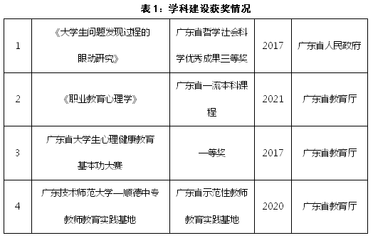 2020年,广东省中职公司心理健康教育与咨询专家指导委员会在公司成立,由公司党委副书记李向明同志担任首届主任。2021年,《职业教育心理学》获批省级一流课程。近年来,教师团队主持省级职业教育心理研究课题5项;出版《职业教育心理学》《中职心理健康教育》等教材5部;积极参与职教团队培训,送教上门服务5000余名职校教师,多名教师被评为广东省职业院校送教上门培训优秀教师。