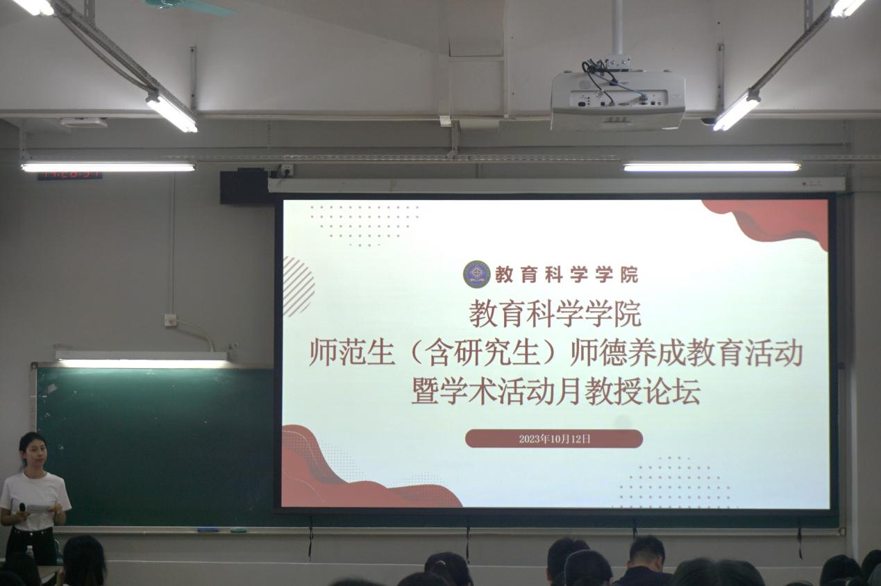 为贯彻落实立德树人的根本任务,涵养师范生的师德情怀,根据《BV伟德官方网站师范生师德养成教育实施方案》《关于开展师范生师德师风主题系列活动暨全国推广普通话活动的通知》要求,2023年10月12日,BV伟德官方网站在白云校区三教113开展了师范生(含研究生)师德养成教育活动暨学术活动月教授论坛,参加本次活动的公司领导有熊华军经理、谢德新副经理,老师有全守杰、崔诣晨、李元明、李一鸣、李思慧等,以及师范生代表130多名同学。活动由王洽同学主持。