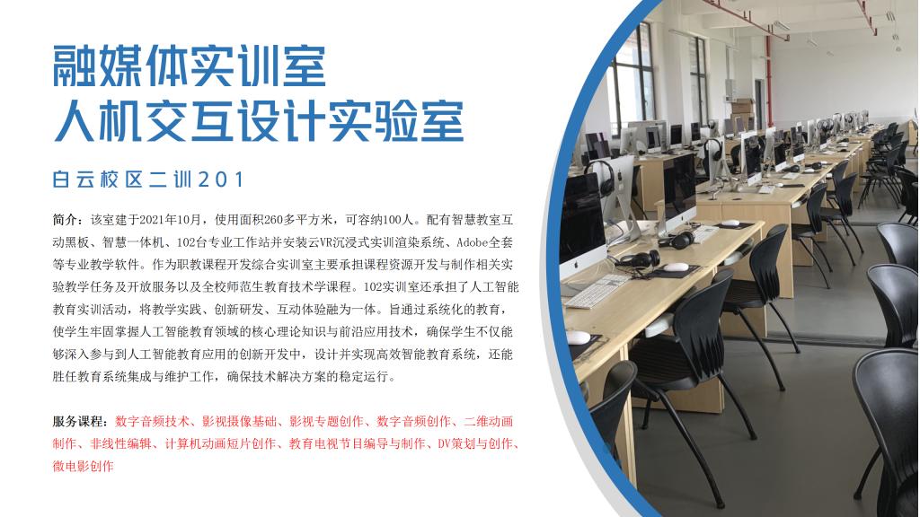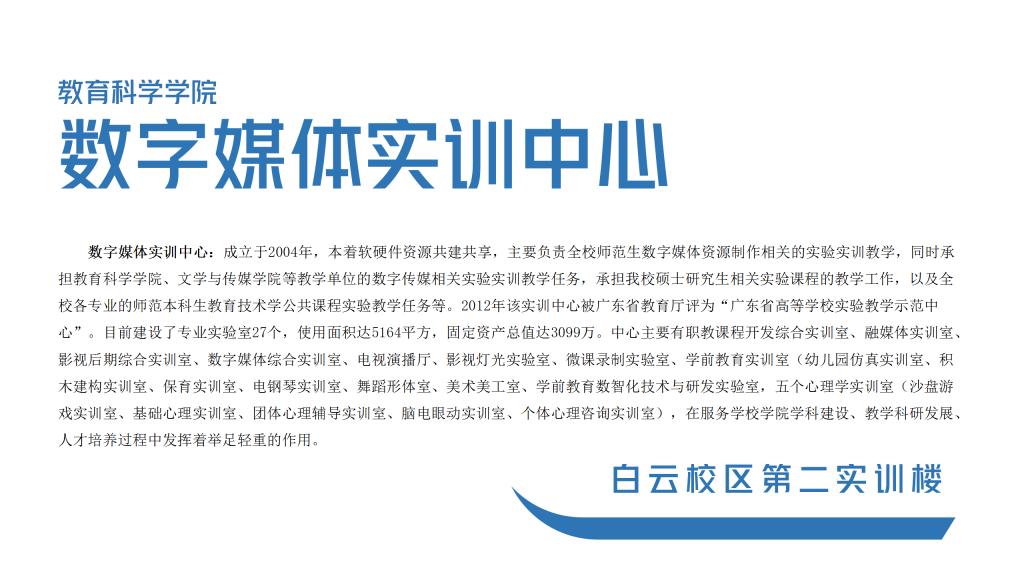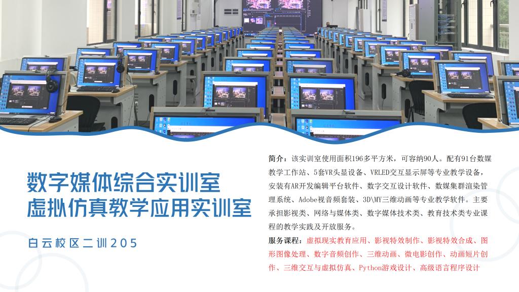 数字媒体实训中心,位于白云校区第二实训楼1.2.4.5.6楼